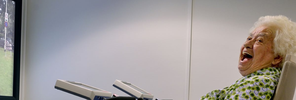 We activeren de cliënten zonder al te veel belasting. De bewegende beelden leiden af van het sporten. Maar het is ook gewoon leuk om bewegende beelden te zien terwijl je fietst. Het is dus ook een stukje dagbesteding.